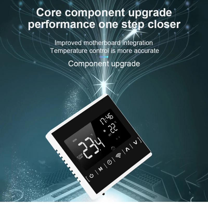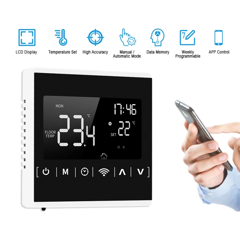 Умный термостат, который может управляться вашим телефоном через приложение «Smart Life», прежде чем вернуться домой.
