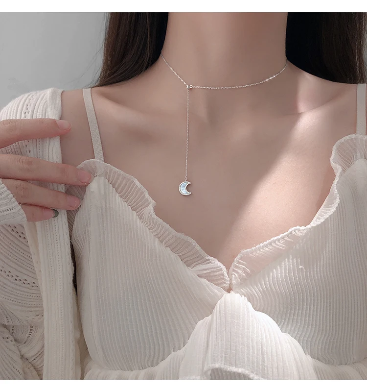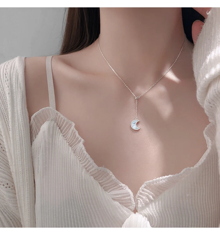 Женское Ожерелье QMCOCO, из серебра 925 пробы, с ракушками и Луной