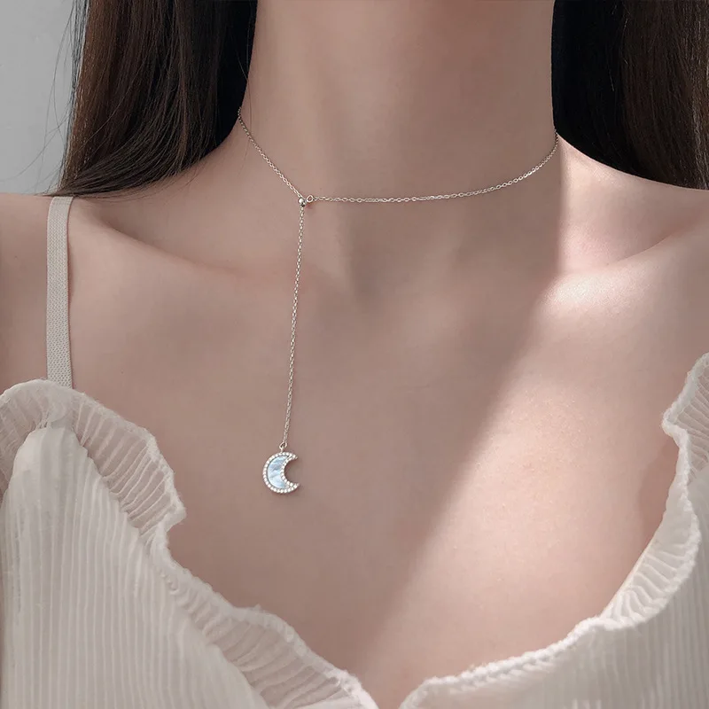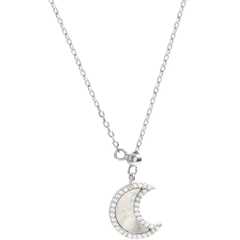 Ожерелье с подвеской в виде Луны и ракушки серебряного цвета