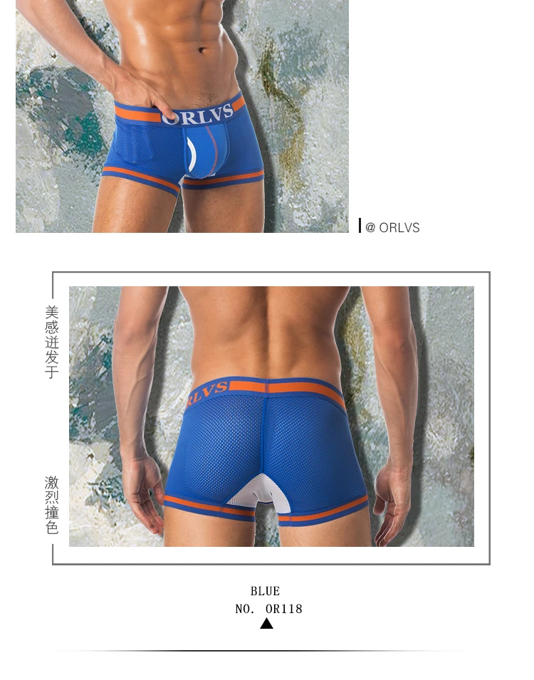 Мужские трусы-боксеры из сетчатой ткани, синие дышащие трусы слипы с эластичным поясом, быстросохнущее нижнее белье для мужчин, 2021