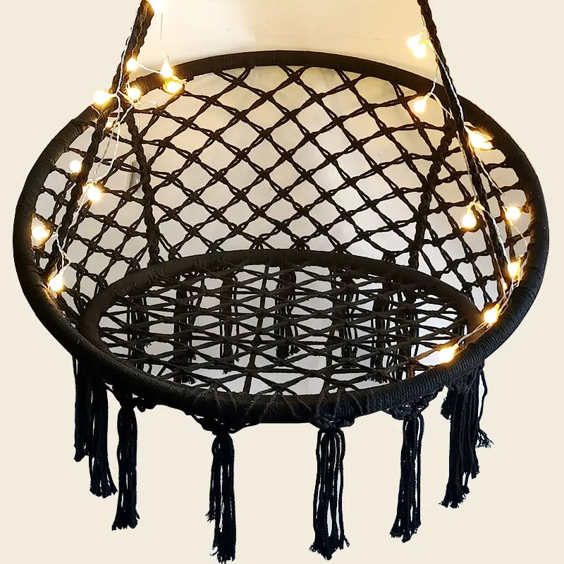 Гамак висячий-кресло качели Спальня круглый стул для взрослых на открытом воздухе Nordic детская общежития вязаное Покрывало русалочка, ручная (белый, черный)