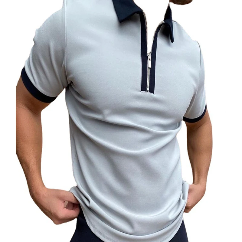 Рубашка-поло мужская летняя, на молнии, с коротким рукавом