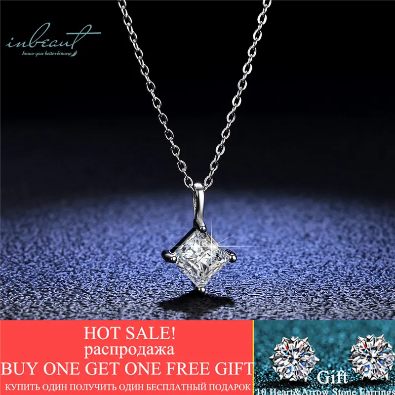 Inbeaut 925 серебро Принцесса Cut 1,2 ct D Цвет пройти Diamond тесты бриллиант квадратный кулон ожерелье Классический Дизайн Свадебное ювелирное изделие, подарок