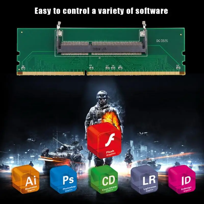 Карта адаптера памяти DDR3 для ноутбука-это карта памяти ноутбука, которая поворачивается на настольные компьютеры (от 200 до 240)! Когда вы пытаетесь перенести память, она может передавать 200 контактов 3 поколения памяти ноутбука 200 контактов на 240 контактов настольного гнезда памяти для использования!