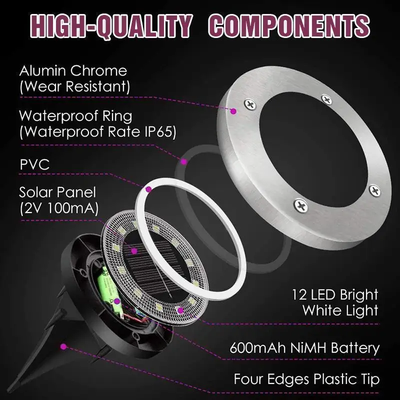 Материал из нержавеющей стали, Огни солнечного путиБеспроводная, нержавеющая, водонепроницаемая и автоматическая.Оставайтесь на земле стабильно.