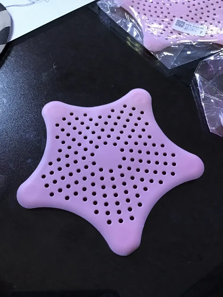 Красивые звёздочки :) присоски маленькие, но держат плотно, не скользят. Я думала, будут плотнее прилегать к раковине, но между присосками материал собирается в складку. В общем целом функцию защиты слива от крупного мусора выполняют