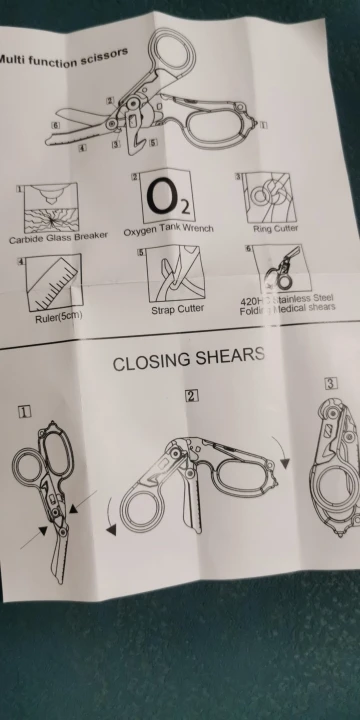 Характеристика:1. С обычной функцией стрижки.2. Имеет функцию открывания бутылок.3. Может отрезать тонкий металлический лист.4. Может быстро отрезать ремень безопасности автомобиля, чтобы избежать.5. Функция молотка безопасности.6. Компактный и легкий, легко носить с собой.