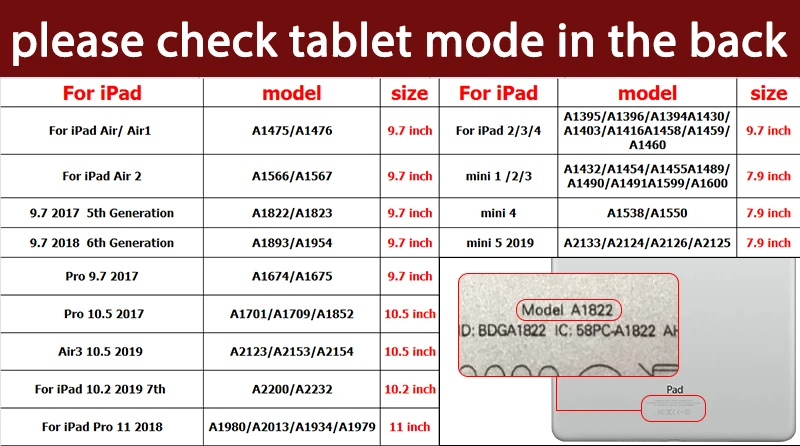 Model NumberFor ipad 10.2 9.7 2018 Air 1 2 3 10.5 10.2 mini 1 2 3 4 5 7.9 Case