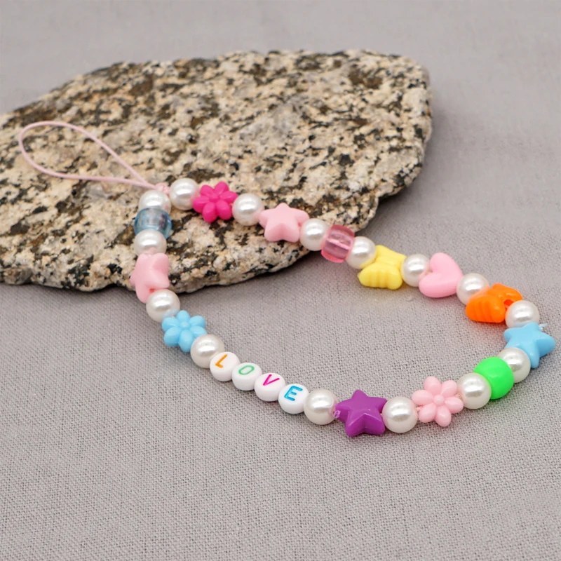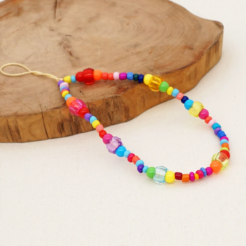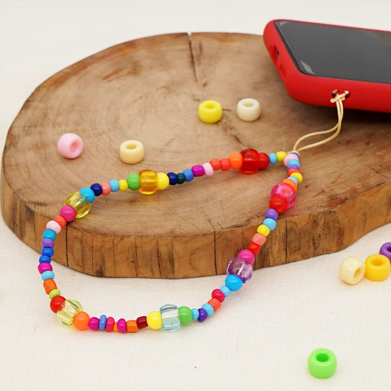 Летняя цепочка для телефона, шнурок, яркие бусины, искусственные бу...
