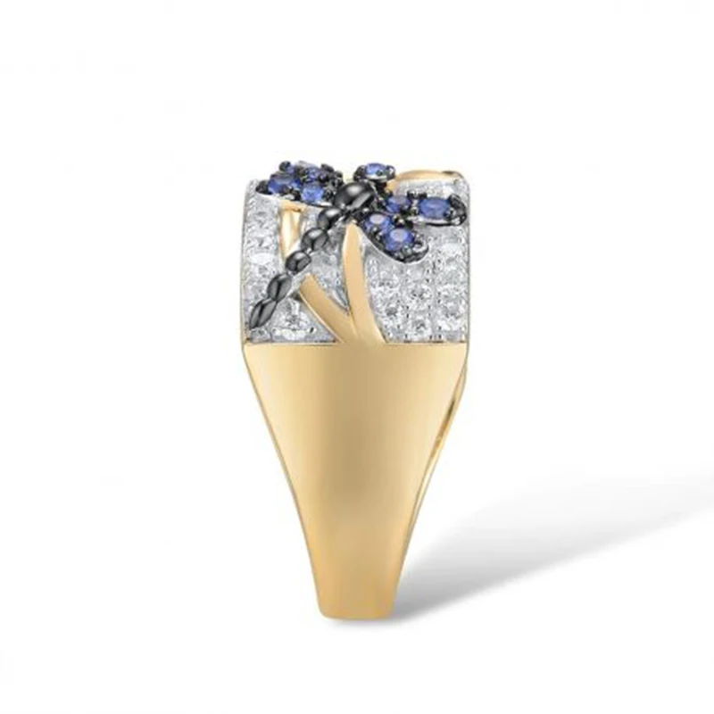 Творческий срез синий кольцо со стрекозой для женщин роскошный золотой белого и черного цвета с украшением в виде кристаллов CZ кольцо женский Свадебные обручальные кольца ювелирные изделия Аксессуары подарок