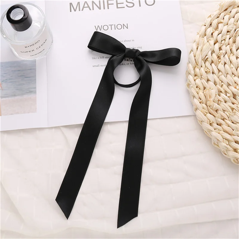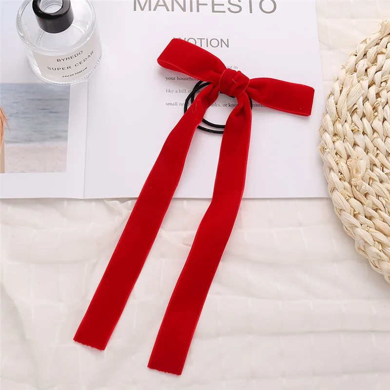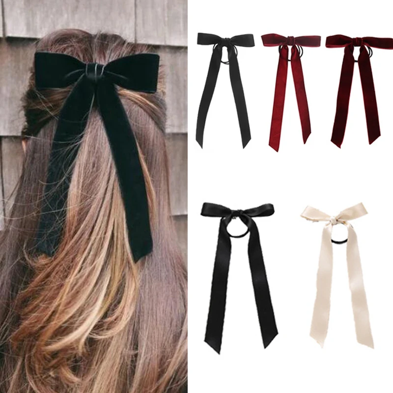 Женская бархатная резинка для волос, красная, черная Длинная лента с бантом, заколка для конского хвоста, резинка для волос, аксессуары для волос
