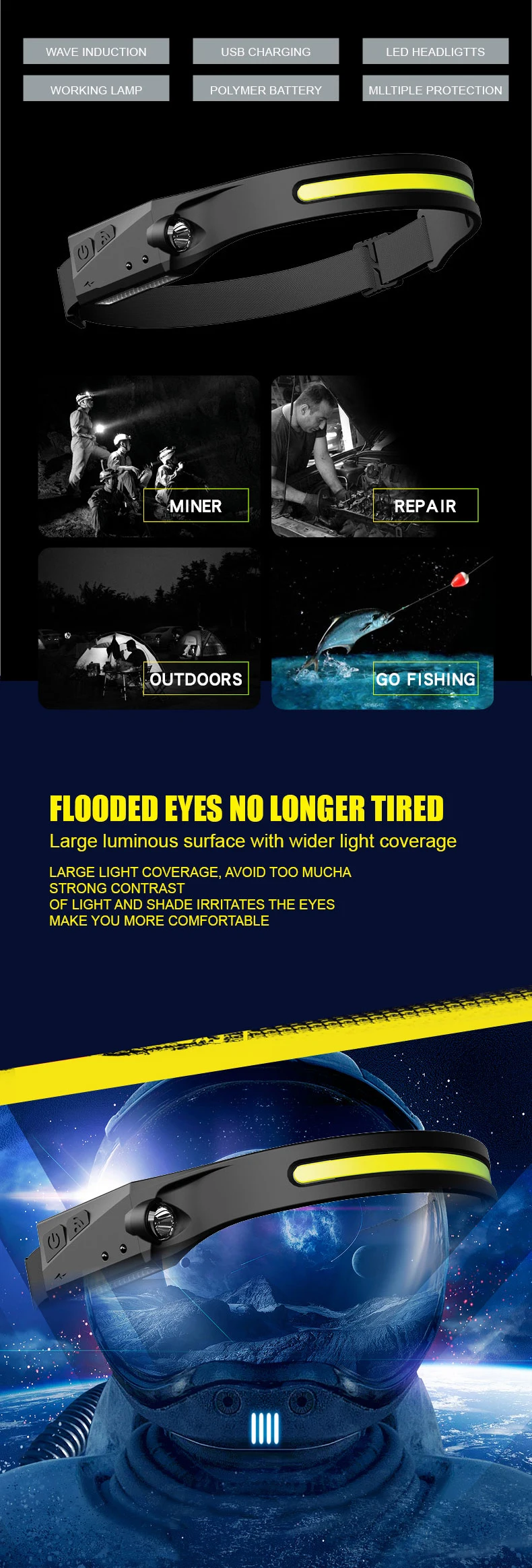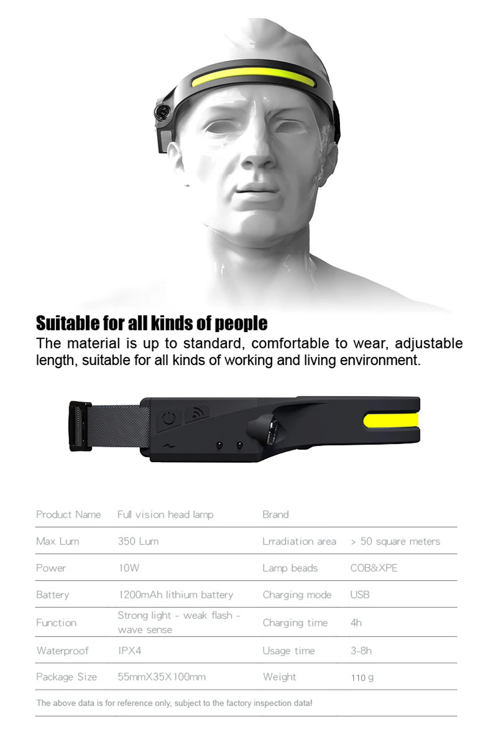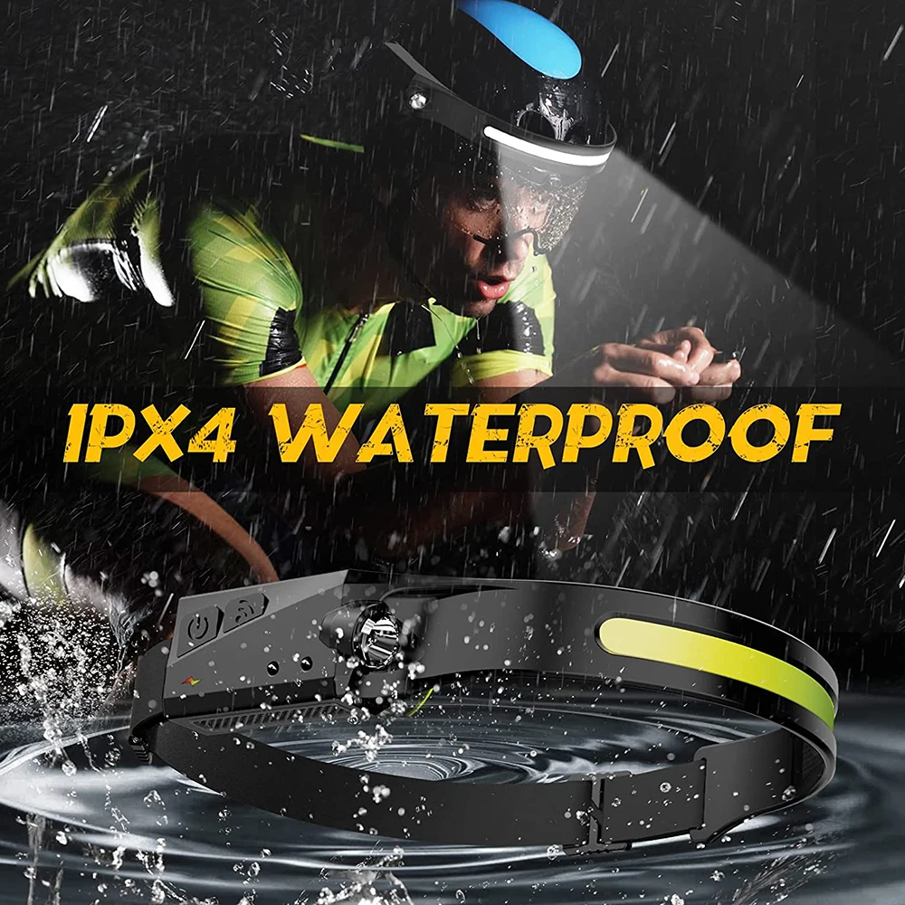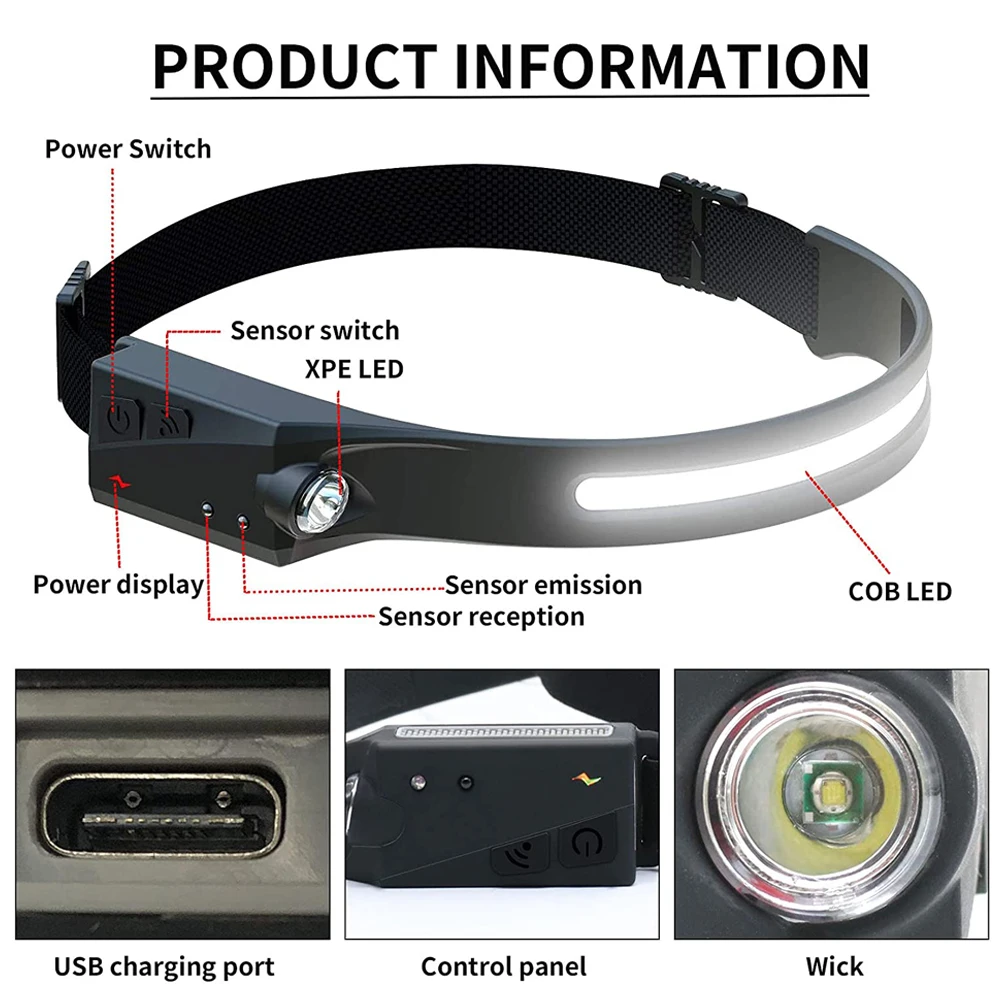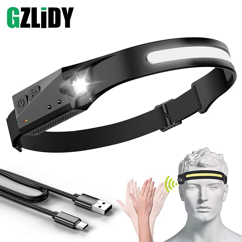 Портативный светодиодный налобный фонарь с ИК-датчиком, Головной фонарь с аккумулятором USB, водонепроницаемый фонарь для рыбалки, мощный фонарь с 3 режимами работы