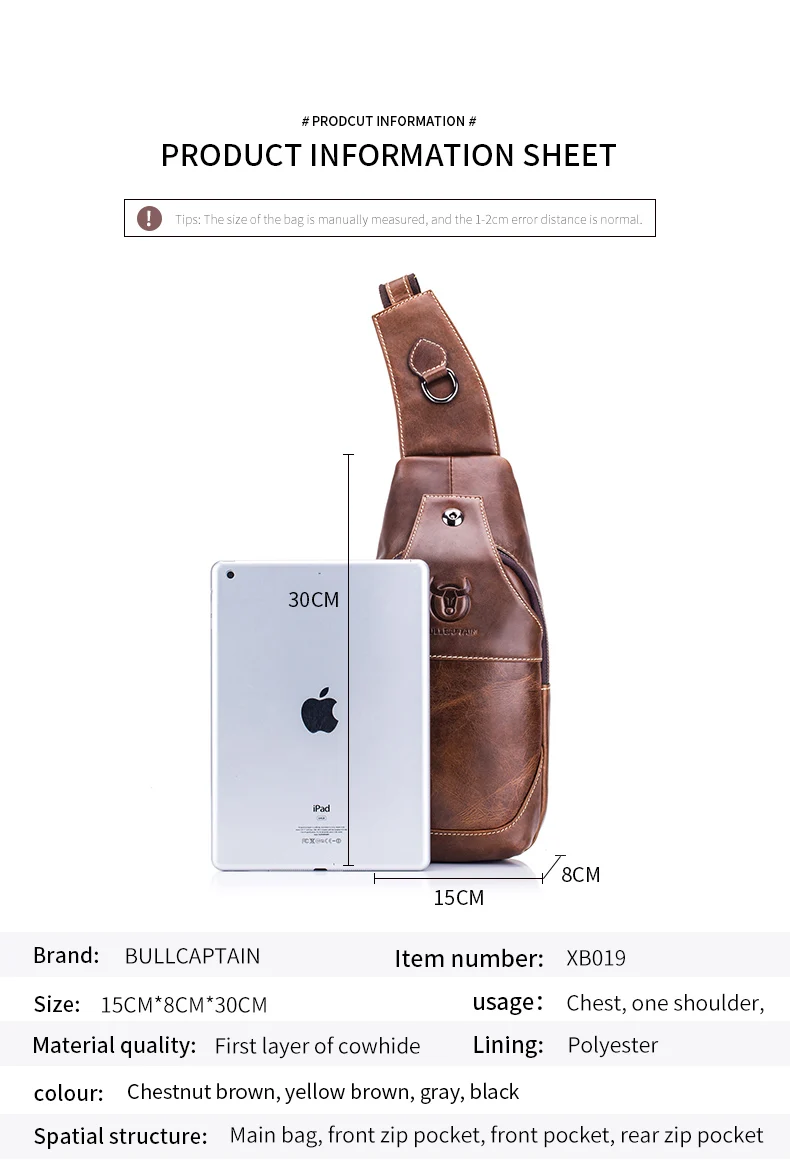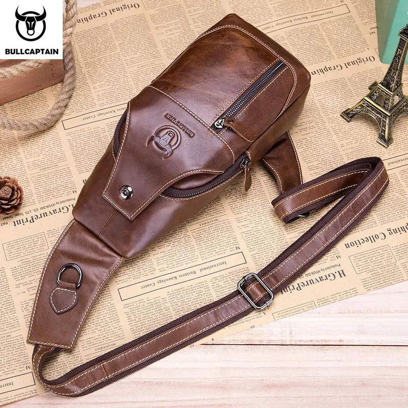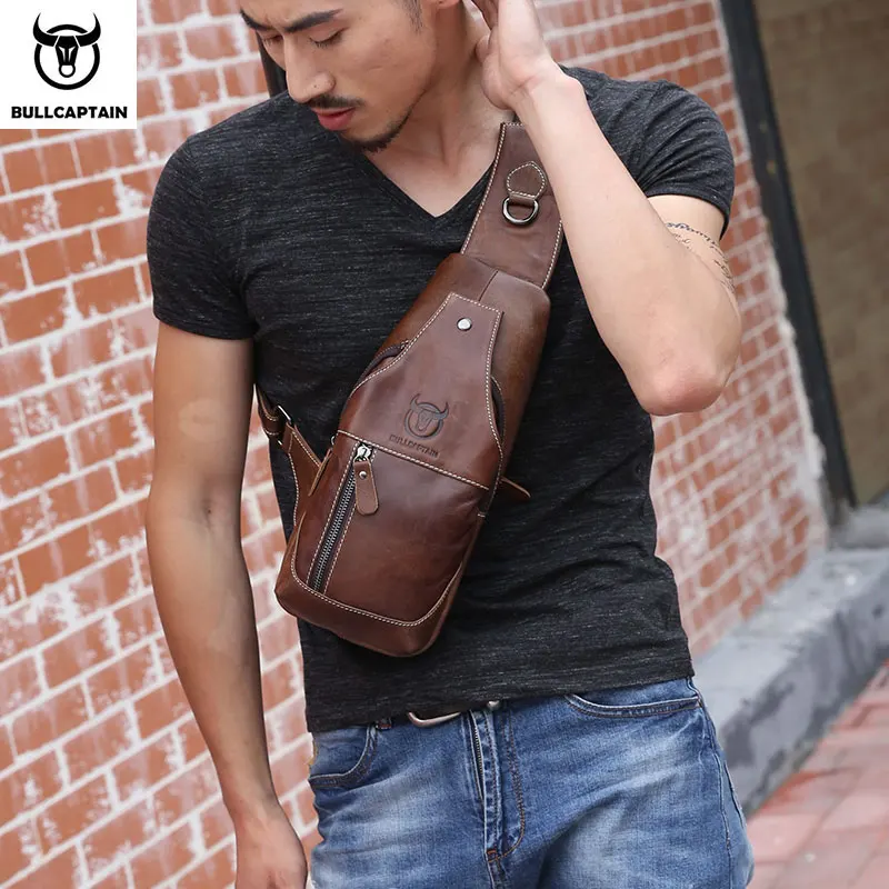 Мужская нагрудная сумка из натуральной воловьей кожи, дизайнерская ...