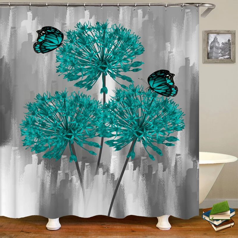 Водонепроницаемая занавеска для душа в ванную комнату, цветочный че...
