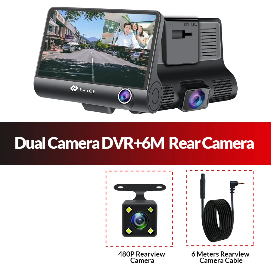 -1 видеорегистратор-1 зарядное устройство-Руководство пользователя-1 шт.-Держатель-2 шт.-1 x устройство для чтения карт USB (подарок)-1 x камера заднего вида с кабелем 6 метров