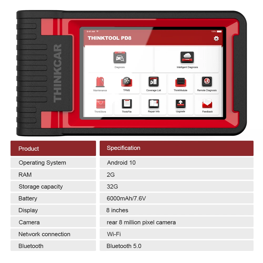 THINKCAR Thinktool PD8 Диагностика полной системы автомобиля OBD2 сканер считыватель кода автомобиля HD тест привода Bluetooth диагностические инструменты
