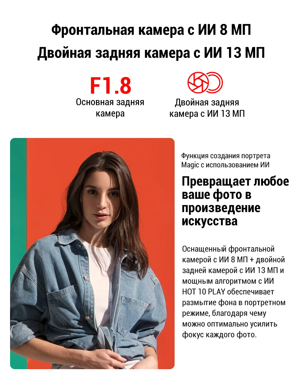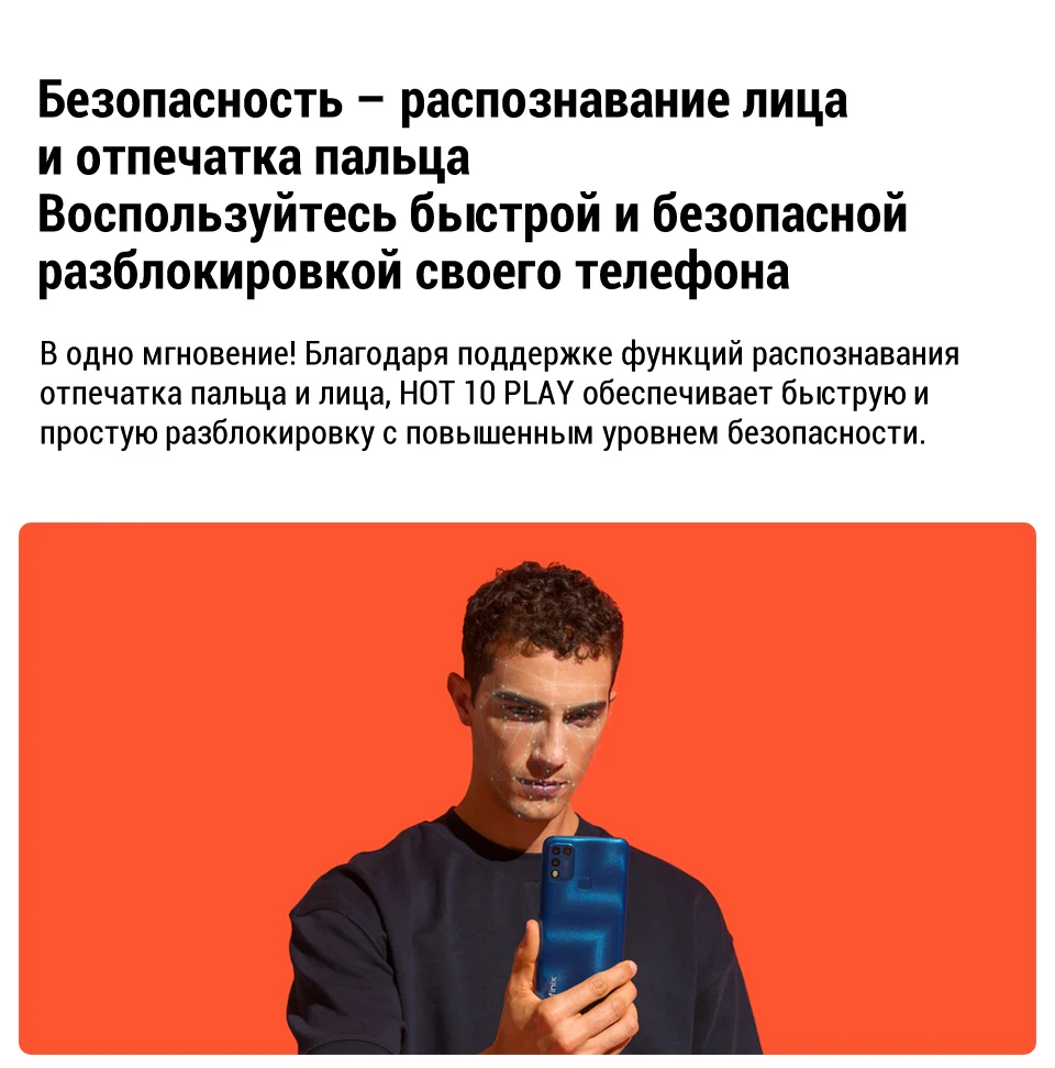 Смартфон Infinix HOT 10 play 2+32GB, Helio G25, распознавание лица и отпечатка пальца, Режим энергосбережения,Molnia