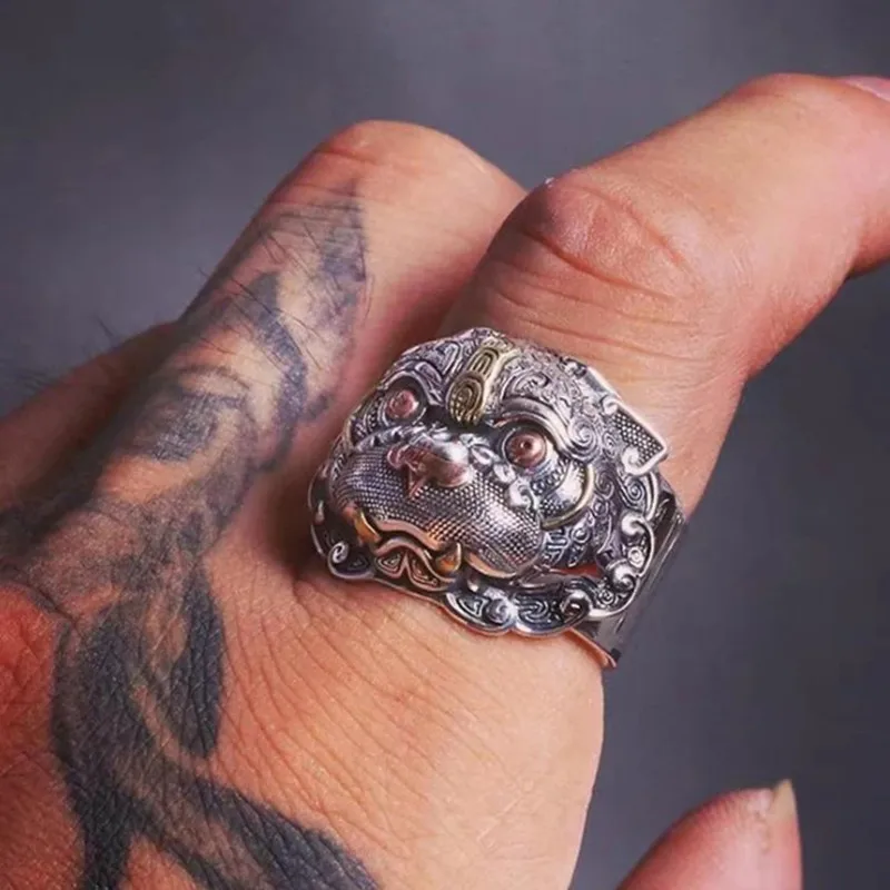 Мужское кольцо с рельефной головой свирепого медведя, 2020 год, муж...