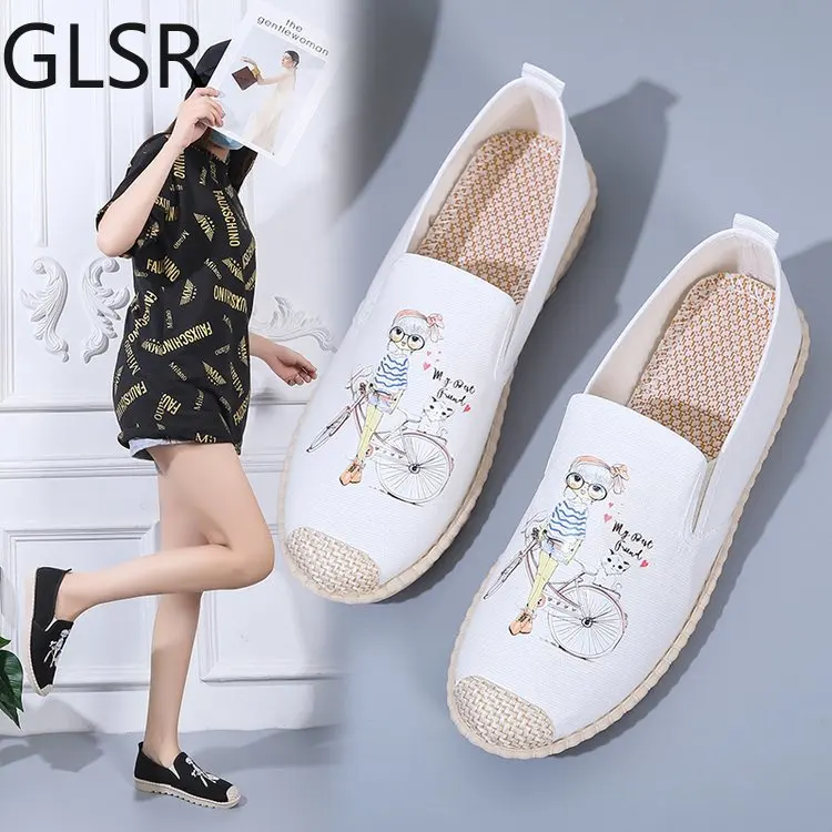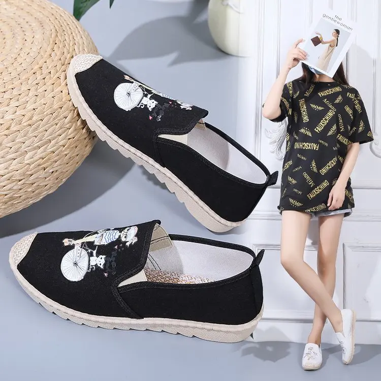 Женские повседневные туфли на плоской подошве, Симпатичные парусиновые туфли без застежек на весну и лето, 2021