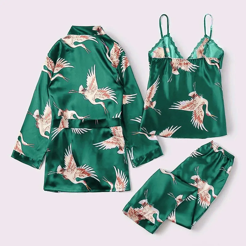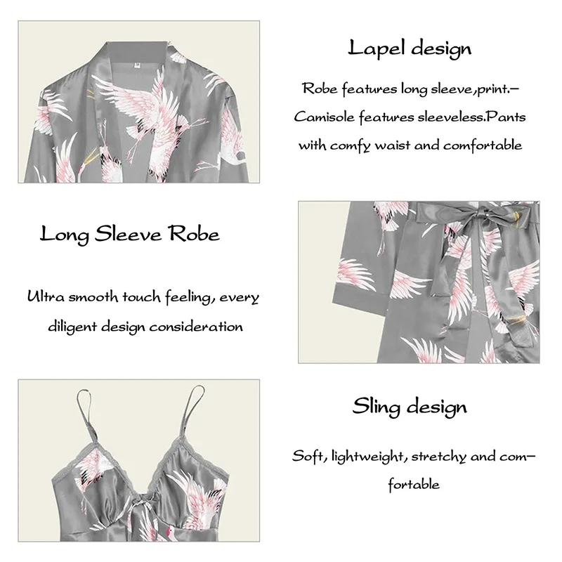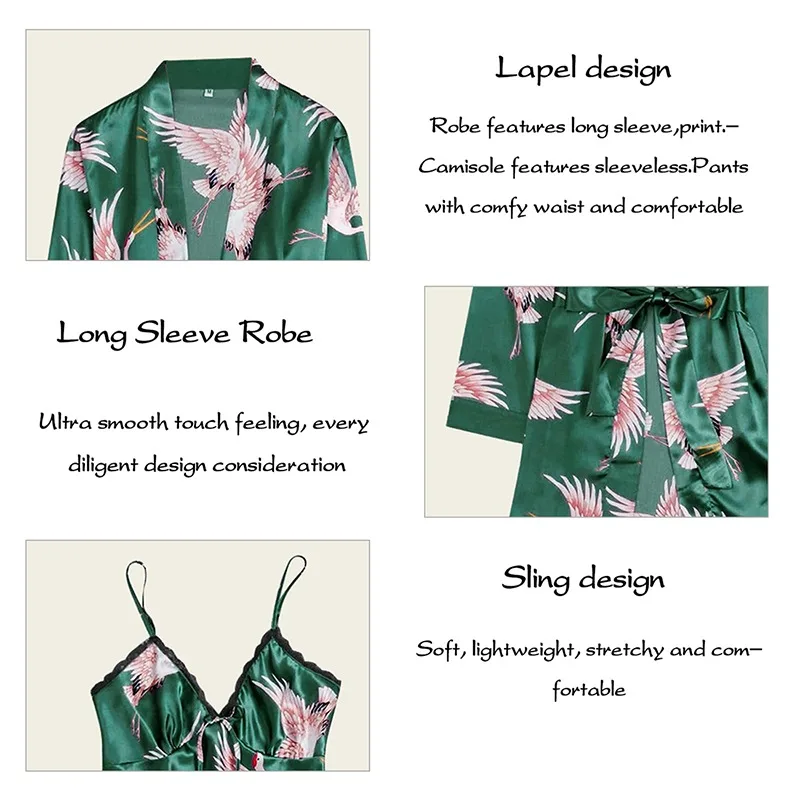 Особенности: женский пижамный комплект с принтом, комплект из 3 предметов, халат с длинными рукавами, камзол, штаны с эластичной талией, Женская домашняя одеждаПримечание: При ручном измерении допускается погрешность в 1-3 смРазмер: S-2XLЦвет: винно-красный, серый, зеленый, черныйМатериал: полиэстерПосылка входит: пижамный комплект
