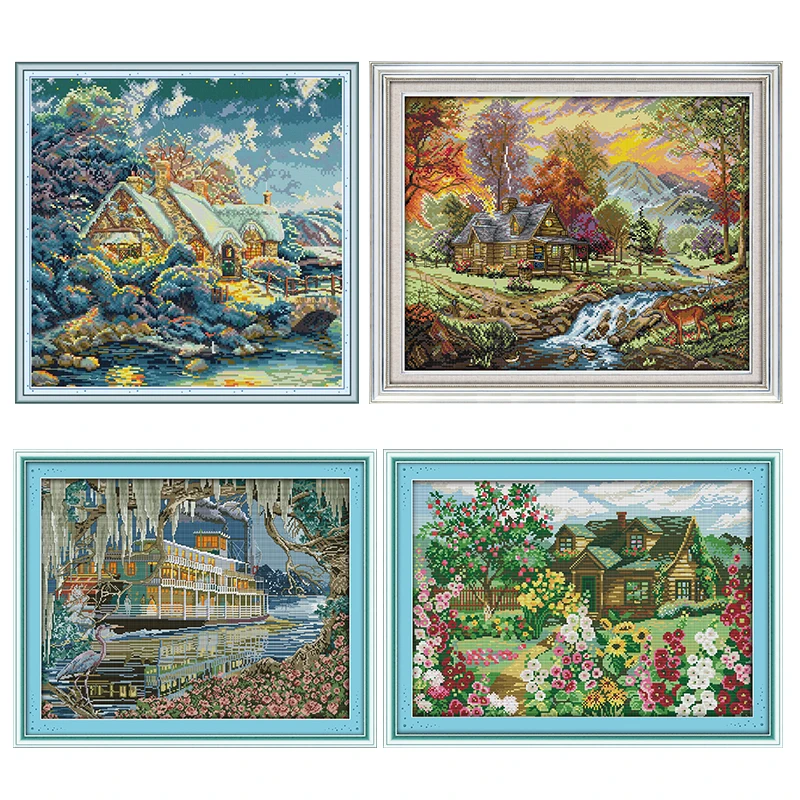 Наборы для вышивки крестом Joy Sunday цветы пейзаж штампованная печ...