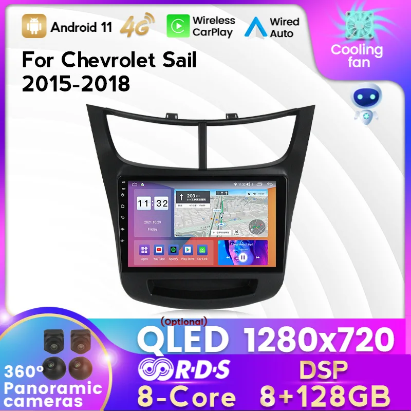 Автомагнитола MEKEDE 2 DIN, 8 + 128 ГГц, Android 11, мультимедийный плеер для Chevrolet Sail 2015-2020, GPS-навигация, встроенный Carplay AUTO BT