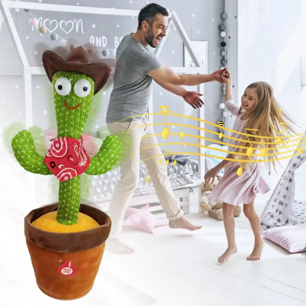 Плюшевый плюшевый кактус, милые мягкие растения, танцующие песни на английском языке, качели, ответ, чтение, освещение для детей, забавные игрушки