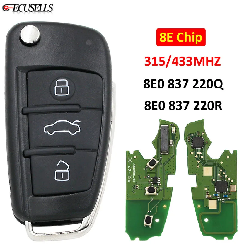 Складной ключ-раскладушка с тремя кнопками, 315 МГц433 МГц, 8E чип 8E0 837 220Q 8E0 837 220R для Audi A6L Q7 2005 - 2011