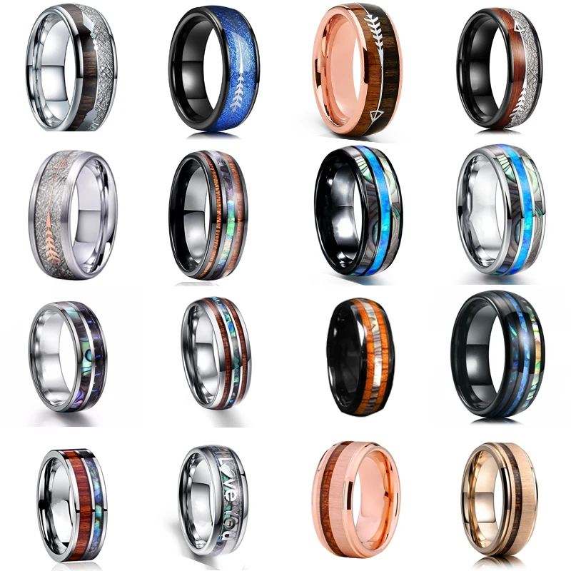 FDLK Новый 24 стиль 8 мм модное роскошное Карбидное кольцо деревянная инкрустация стрелка и ракушка инкрустация кольцо свадебные мужские ювелирные изделия подарок