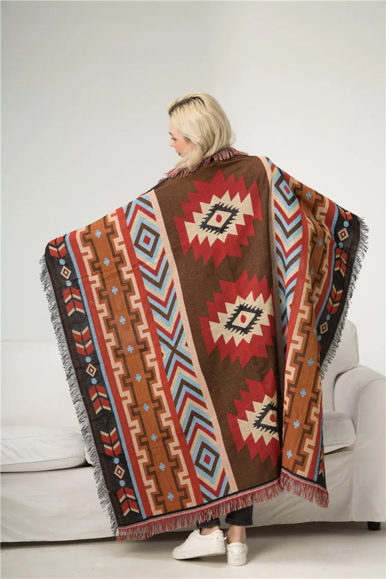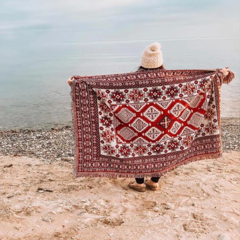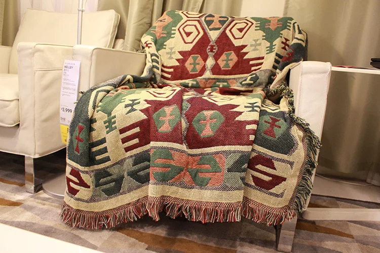 Племенное одеяло, индийские уличные коврики, одеяло для кемпинга и пикника, декоративное постельное покрывало в стиле бохо, плед, коврики для дивана, дорожный льняной коврик с кисточками