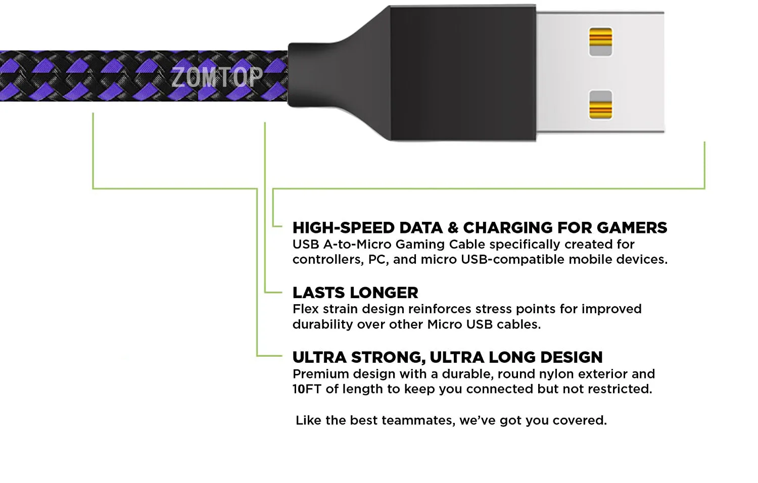 Об этом товаре Одновременно заряжайте и играйте-нет ничего хуже, чем ваш контроллер, умирающий во время охоты на громовую челюсть. К счастью, с нашим зарядным кабелем micro USB вы можете наслаждаться бесшовной игрой, а ваш контроллер заряжается в отличие от зарядной док-станции, что делает игровую ночь с друзьями проще. Быстрая зарядка и синхронизация-без потери мощности с этим кабелем премиум-класса для полной скорости зарядки даже при очень длинной длине. Изготовлен из проводов высокого калибра 23 AWG с низким сопротивлением, что позволяет USB-кабелю Oritikur заряжать на 8% быстрее, чем обычные USB-кабели. Поддерживает максимальный ток 2,4 А и передачу данных до 480 Мб через USB 2,0. Усиленная конструкция-один из первых в истории зарядных кабелей, изготовленных из пуленепробиваемого арамидного волокна, тройной Плетеный спутанный нейлоновый внешний вид и сваренный лазером алюминиевые соединители делают этот кабель отличительным от обычных USB-кабелей, выдерживает как минимум 10000 циклов испытания на изгиб 90 градусов. Удобный длинный-очень длинный кабель micro USB длиной 10 футов/3 м позволяет вам сидеть и играть на удобном расстоянии, способ более удобен в использовании, сидя на диване или лежая на кровати; Также наши компактные соединительные головки легко и устойчиво вставляются, не потеряются и не выпадают из ваших устройств. Универсальная совместимость-специально разработан для PlayStation и контроллеры для Xbox, позволяет вам взять на себя ответственность за игру. Также совместим с телефонами и планшетами Android и Windows и другими многофункциональными устройствами, включая Samsung S7/S6/S5/Edge / Nexus / HTC / Motorola / Nokia / LG / Sony / One Plus / Blackberry/устройства GPS/аккумуляторные батареи/камеры/видеокамеры/жесткие диски/электронные считыватели/принтеры и другие портативные устройства с интерфейсом micro usb.