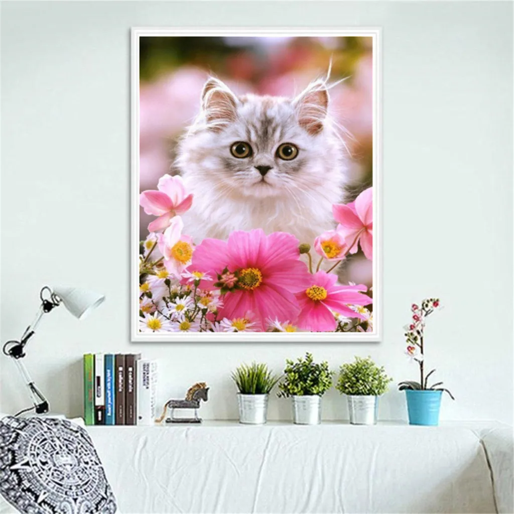 Алмазная 5D картина сделай сам, квадратная, круглая, с животными, кот, вышивка, украшение для дома