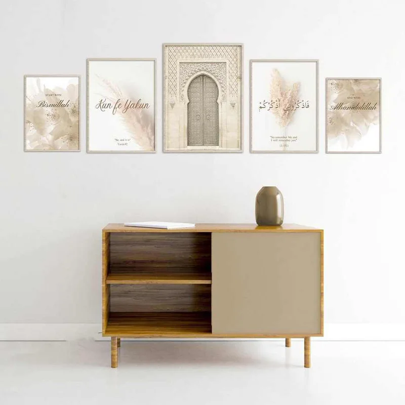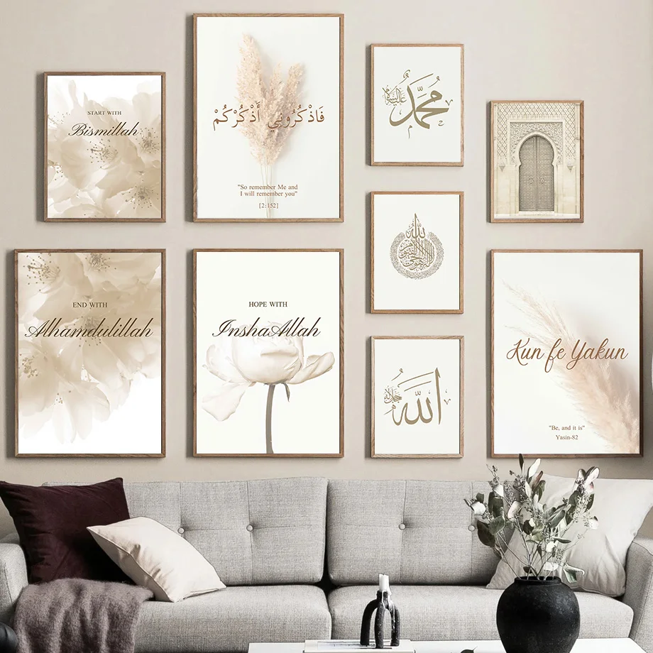 Исламский плакат, бежевый цветок, холст, печать, мечеть Марокко, дв...