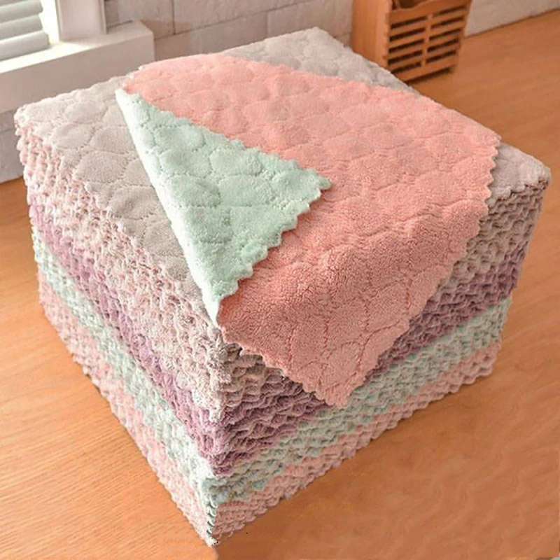 5шт микро волокна ткань для очистки двухслойный абсорбирующий Кухня салфетка для мытья посуды с антипригарным покрытием для очистки масла вытирая Полотенца инструмент для уборки дома