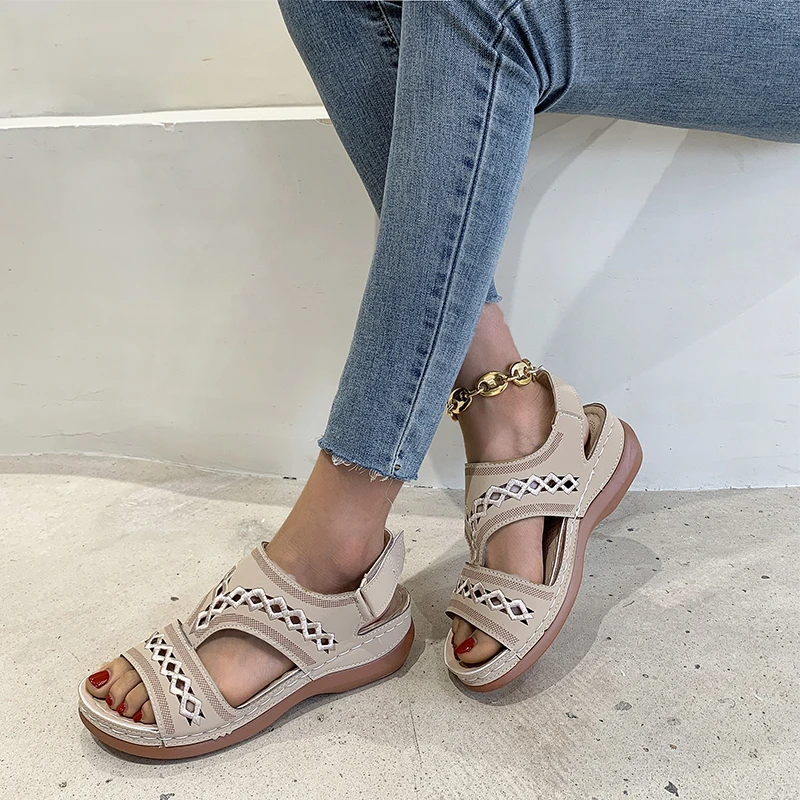 Сандалии женские на танкетке, ортопедические босоножки на высокой танкетке, винтажные Нескользящие, повседневная обувь на платформе в ретро стиле, лето 2022