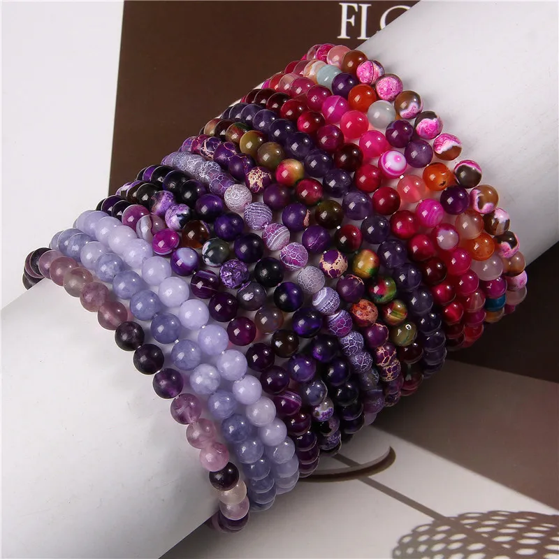 Оптовая продажа партиями по 6 мм Фиолетовый Природный аметистами тигровый глаз Aagtes камень браслет из бисера ручной работы Йога энергии ювелирные подарки для мужчин и женщин