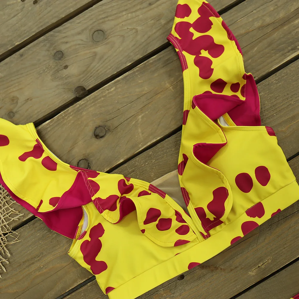 Новинка 2021, сексуальный комплект бикини, женский цветочный купальник с чашками пуш-ап, сетчатый бандажный купальник с оборками, купальный костюм, пляжная одежда, бикини