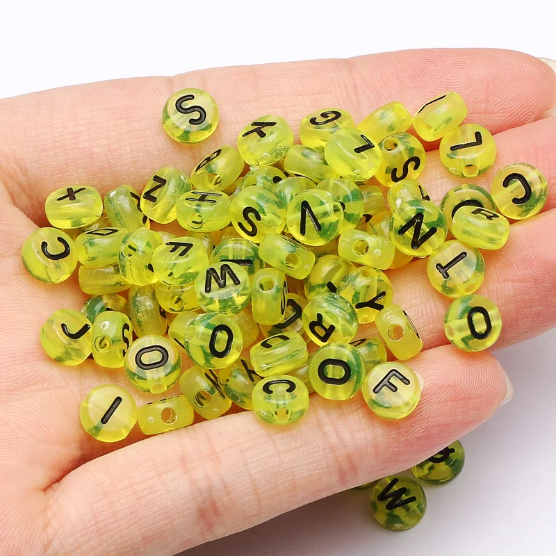 4*7 мм) бусины типа жемчужины, перламутровый цвет жёлтый буквы акриловые бусины Алфавит круглые плоские наборные бусины для самостоятельного изготовления ювелирных изделий браслет ожерелье УП