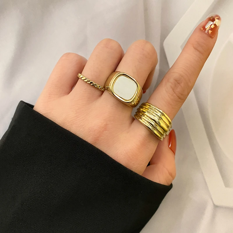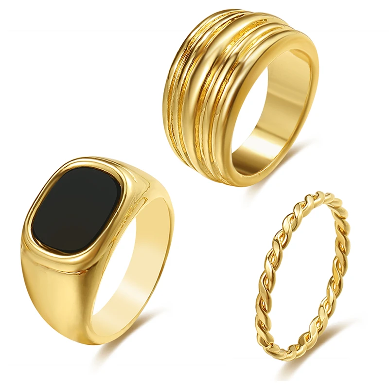 Набор Колец овальной формы с черной глазурью в форме капли для женщин и мужчин, золотистого цвета, широкое кольцо, Подарочная бижутерия, 2021