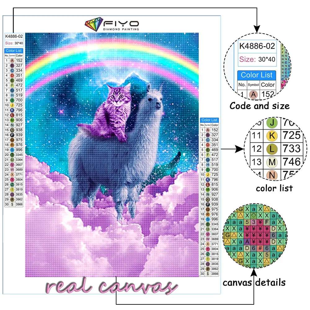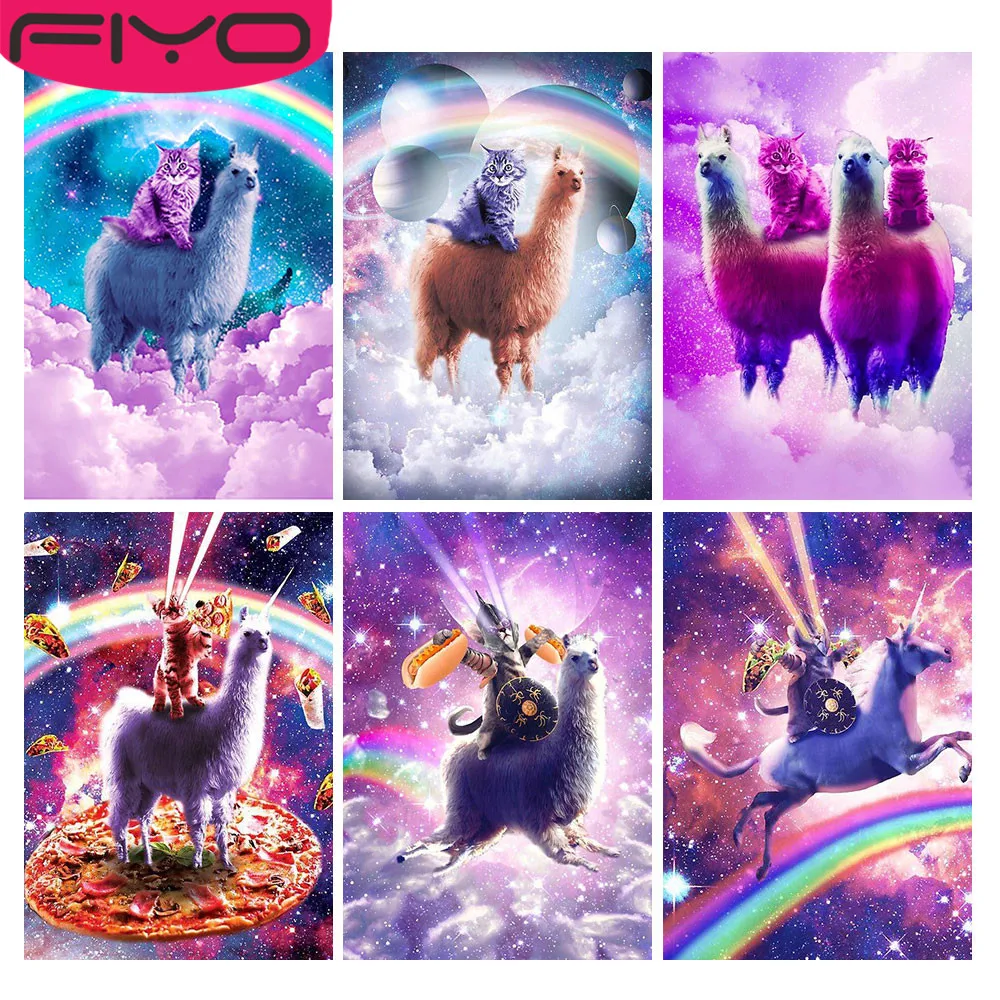 FIYO 5D алмазная вышивка мозаика космическая алмазная живопись Альпака квадратнаякруглая Стразы Радужная кошка