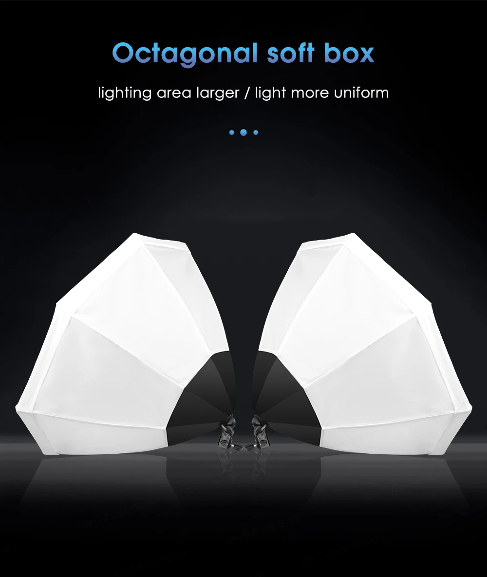Материал высокого качества: Изготовлен из складного нейлонового покрытия и отличается высокой светоотражающей способностью; Восьмиугольная мягкая ткань, помогает вашей фотографии, смягчая светильник вспышки и отливая даже светильник.Вращающаяся на 240 ° головка и регулируемая подставка: софтбокс для студии имеет независимую фиксирующую ручку, которая может поворачиваться на 240 °, чтобы адаптироваться к различным углам.Светильник изготовлен из высококачественного алюминия. Трехсекционная конструкция колонны может сокращаться до 66 см и растягиваться до 200 см, рабочая высота 190 см.Подходит для различных фотографий: Эта усовершенствованная версия софтбокса очень подходит для использования в студии. Будь то портретная съемка,Модная фотосъемка, детская фотосъемка или натюрморт, эта софтбокс может легко создавать идеальные световые эффекты для внутренней съемки, делая фотографии более привлекательными.Пожизненная гарантия: по любым вопросам, пожалуйста, отправьте нам сообщение. Мы ответим вам в течение 24 часов. Если продукт не удовлетворит вас, вы можете сначала сообщить нам, и мы решим его хорошо для вас.