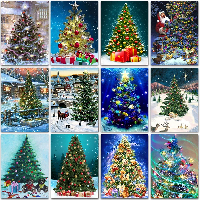 Камни в форме ромба 5D, сделай сам, бриллиантовый рисунок Рождество Бриллиантовая вышивка с изображением дерева Пейзаж Вышивка крестом Стразы мозаика художник домашний декор