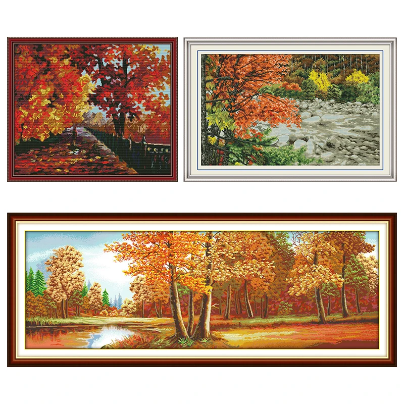 Набор для вышивки крестиком Joy Sunday с красными листьями, Набор для вышивки, набор для домашнего декора, с напечатанной нитью 11CT 14CT