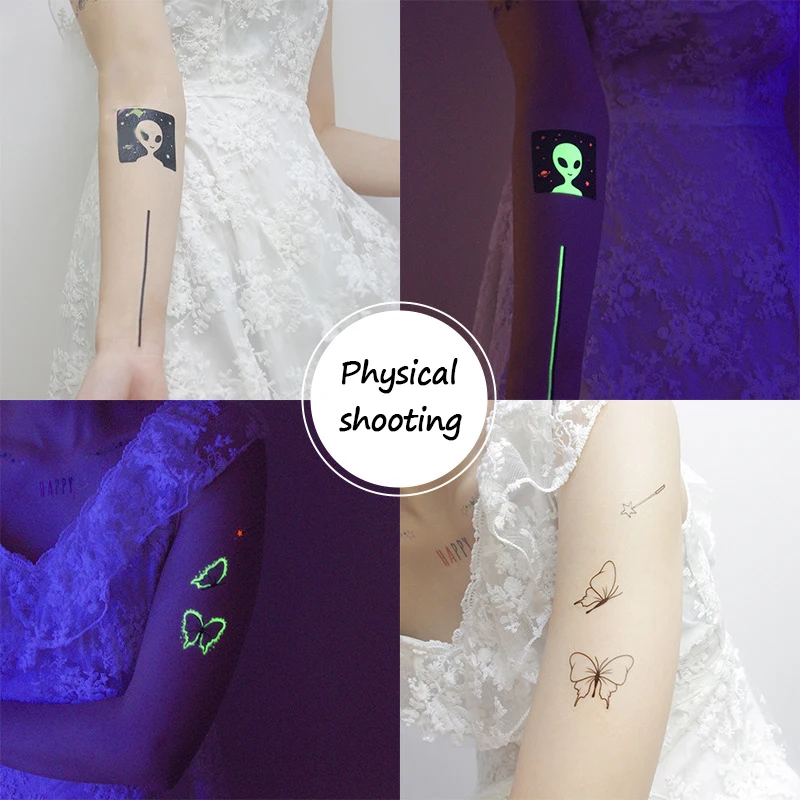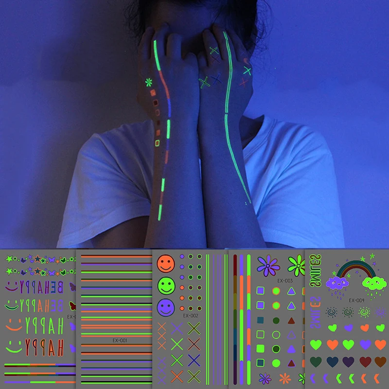 Красочные светящиеся водонепроницаемые Временные татуировки, летние музыкальные праздничные модные татуировки для девочек на руки и ноги, детские милые наклейки, оптовая продажа