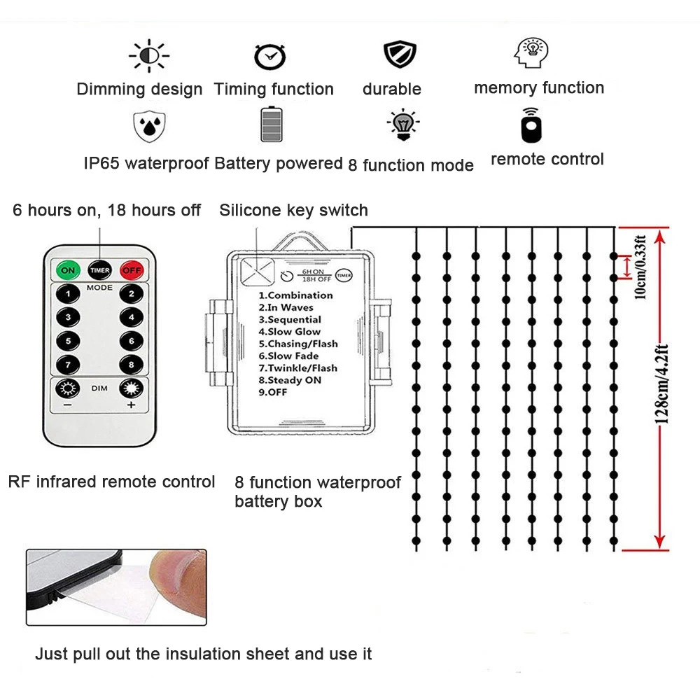 104 светодиодный садовый зонт светильник на открытом воздухе Водонепроницаемый IP67 строка светильник s светильник Сенсор Управление садовый декоративный светильник