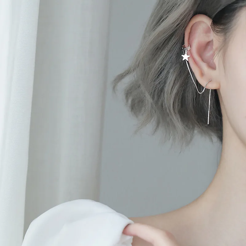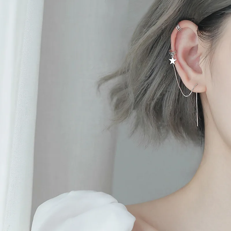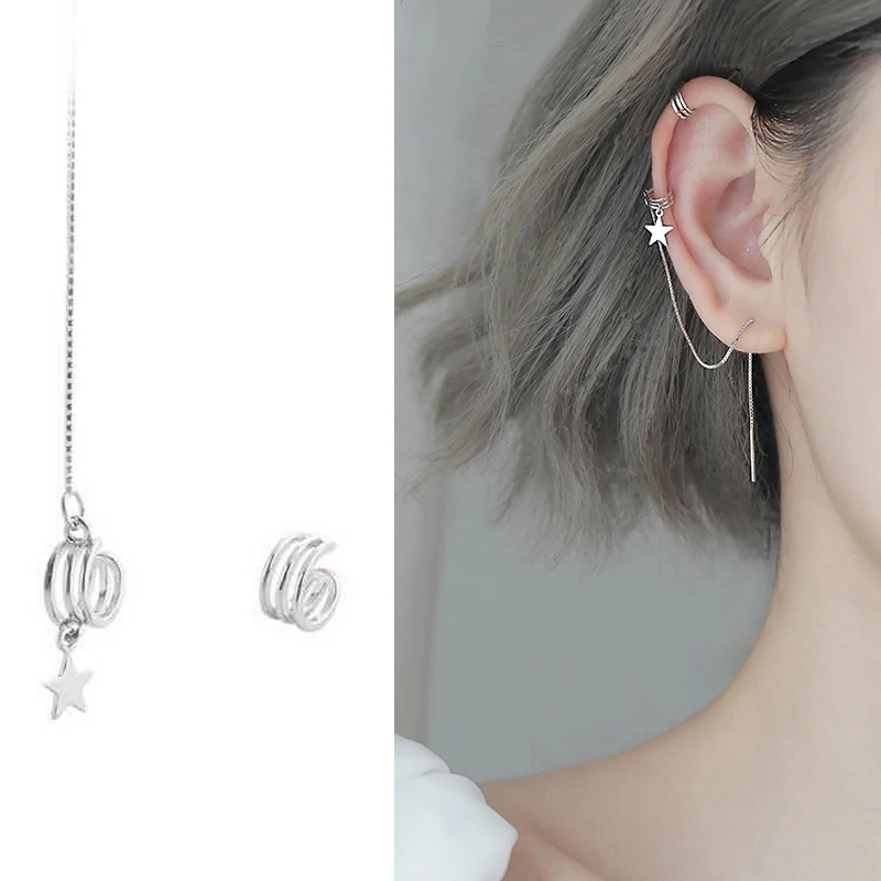 Корейский Новый стиль звезда Асимметричная c-образная заколка для ушей Длинная кисточка, цепочка серьги-подвески для женщин серьги-манжеты для ушей ювелирные изделия