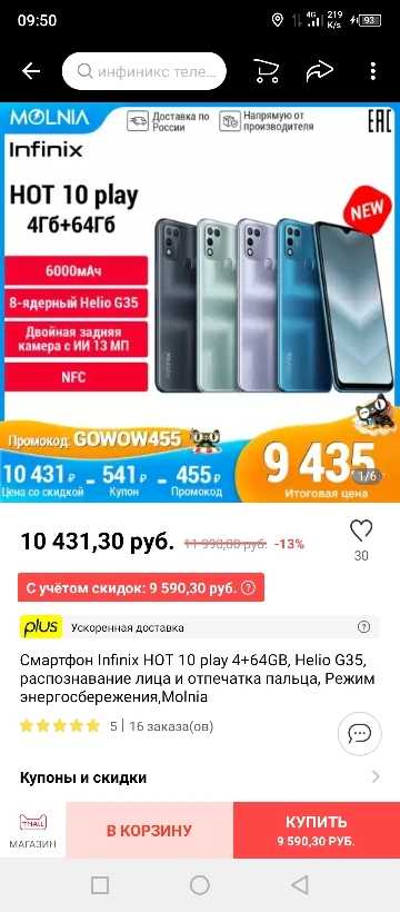 Смартфон HONOR 10X Lite 4+128 ГБ ,Быстрая зарядка 22,5 Вт,NFCРостес...