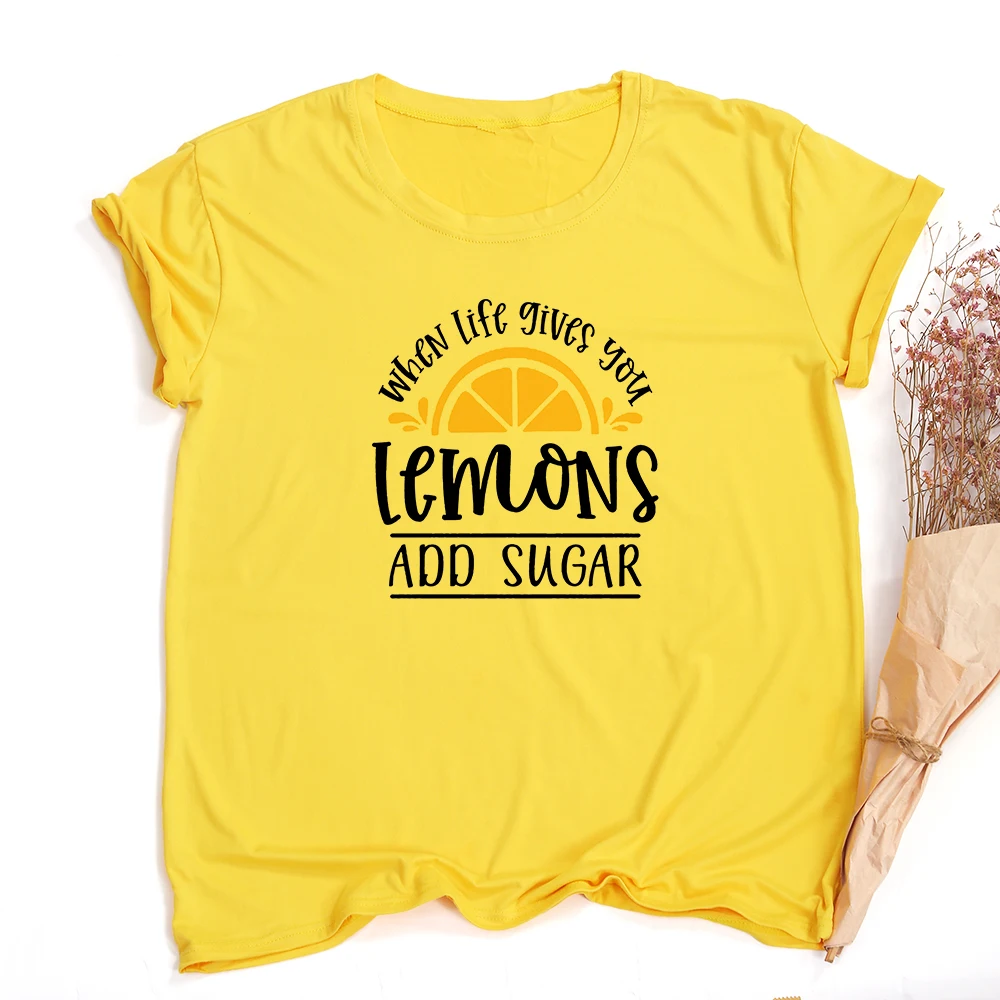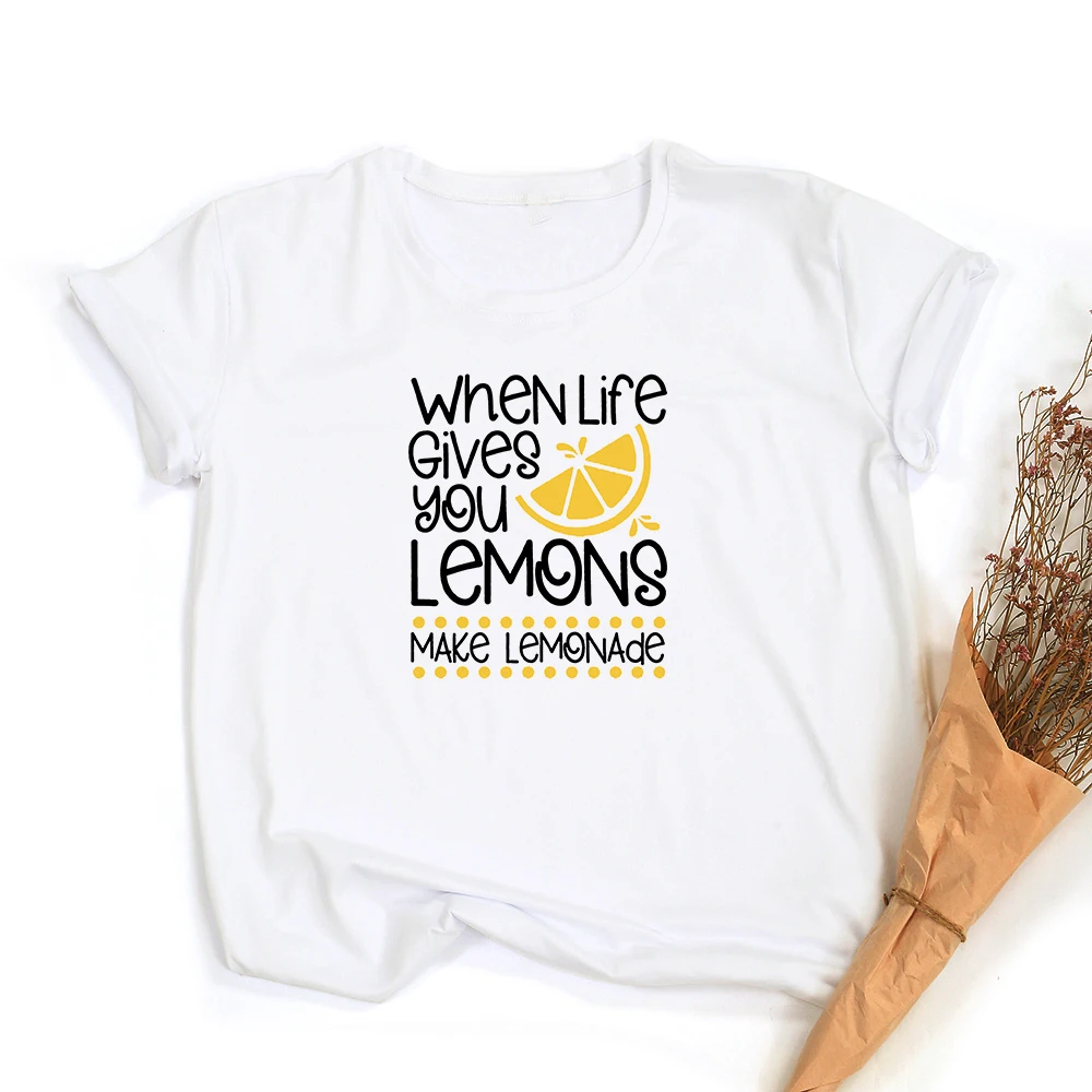Женская футболка с короткими рукавами When Life Give You Lemons, забавная эстетичная футболка в стиле Харадзюку, женская футболка, Camisetas Mujer