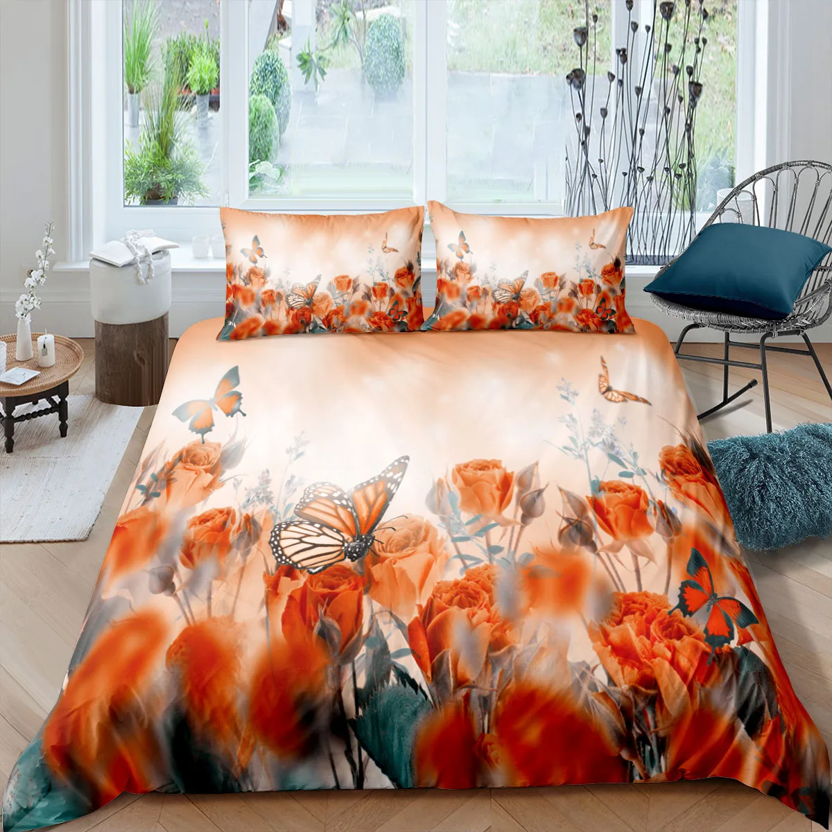 Комплект постельного белья с 3d пододеяльником, синими цветами и бабочками
