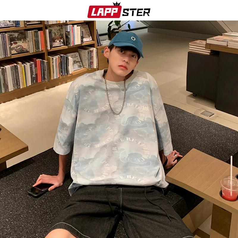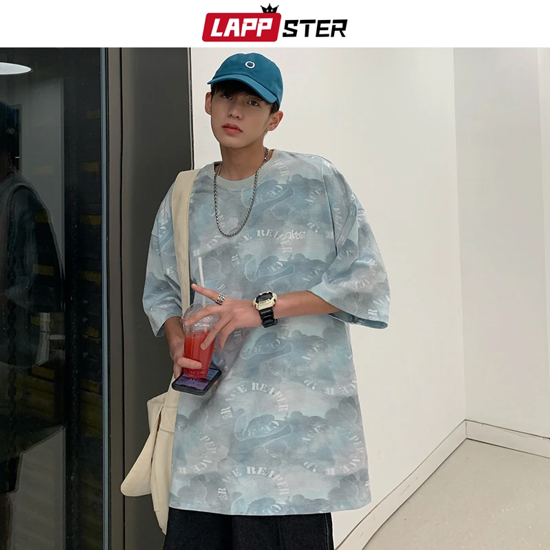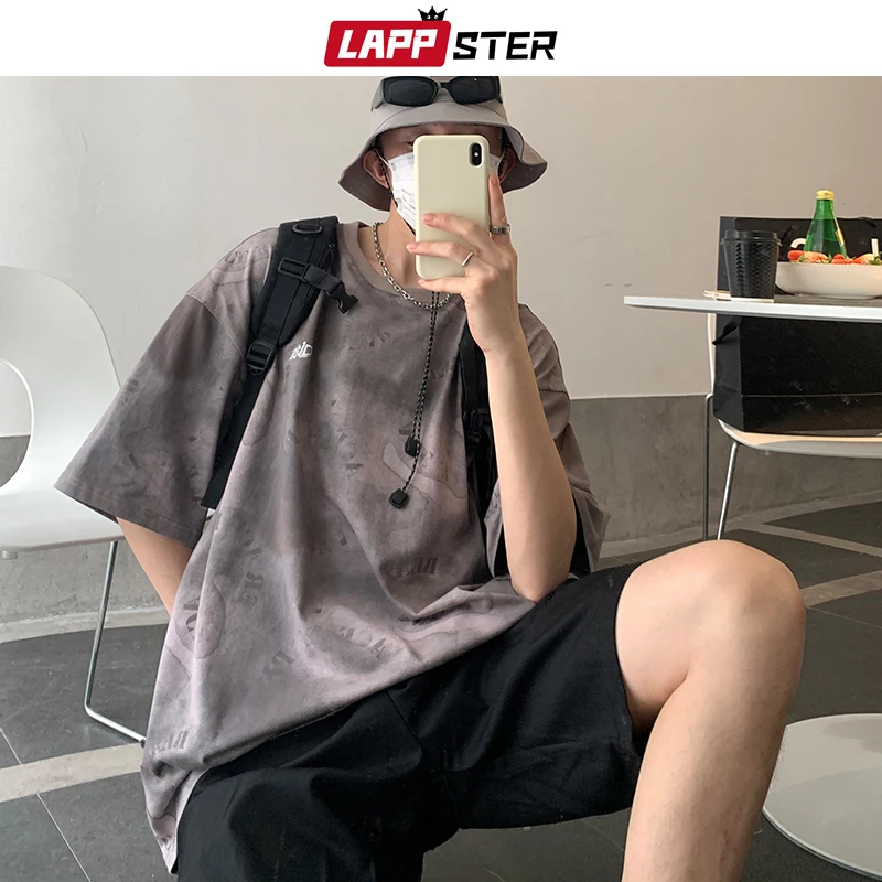 LAPPSTER Для мужчин Harajuku вареный Японская уличная одежда футболки 2021 летние Для мужчин s Винтаж негабаритных футболки мужской короткий рукав футболки